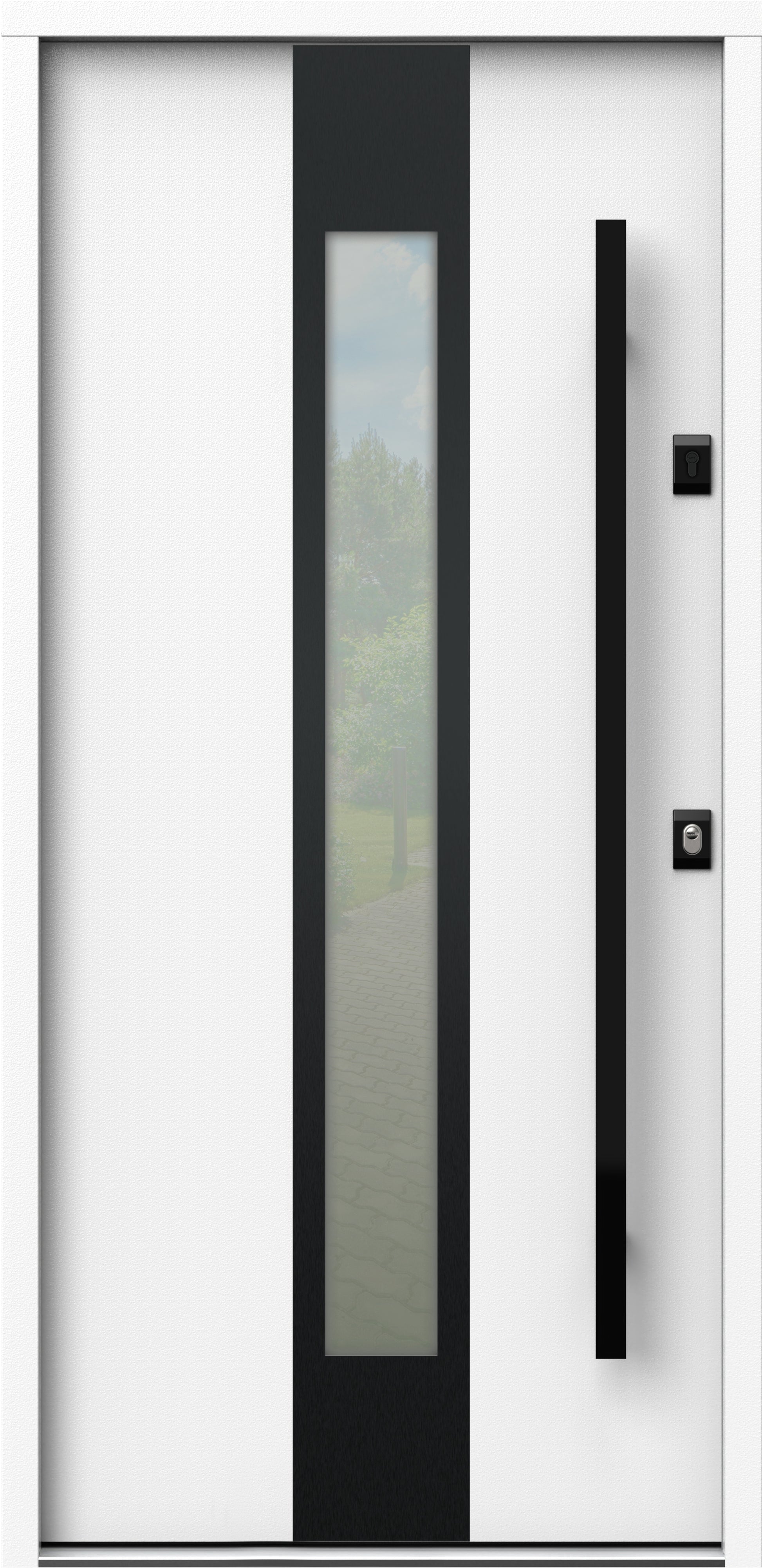 Elevate your space with the Gerda Hanover White Door, a perfect fusion of modern elegance and functionality. This 36" x 80" inward-opening door features a crisp white finish, beautifully contrasted by bold black décor, creating a timeless and sophisticated look.
